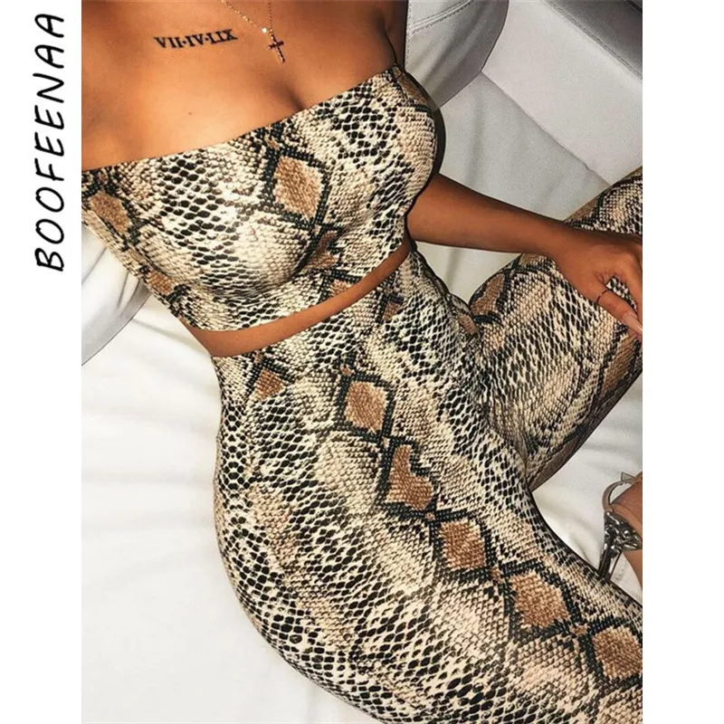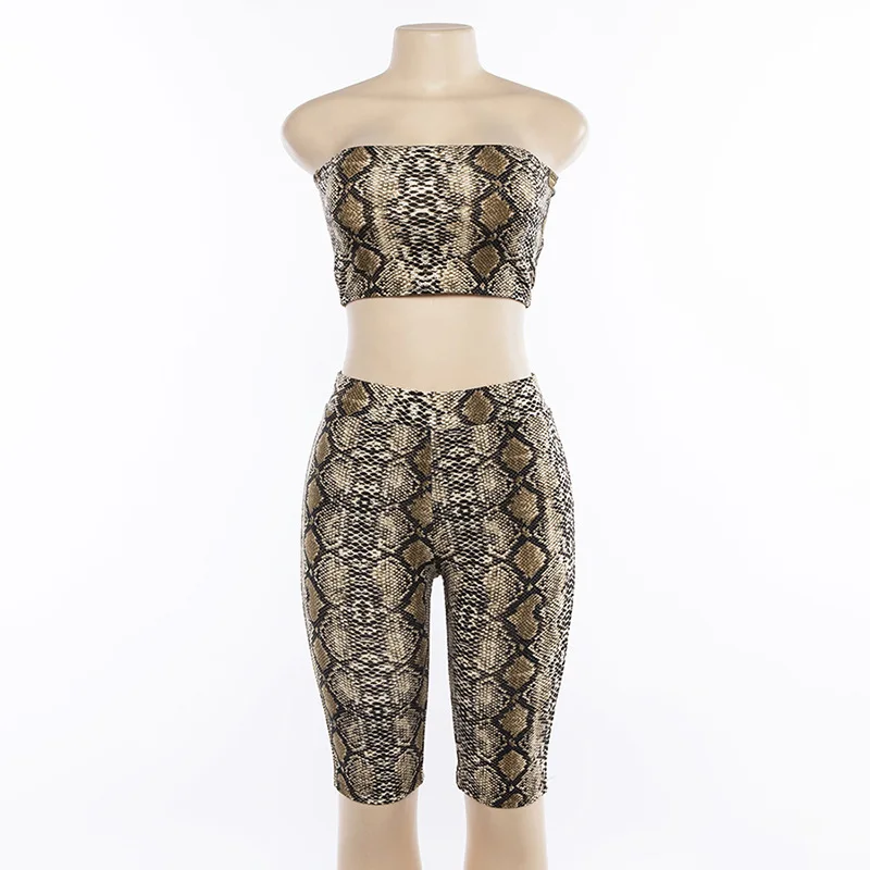 amazing BOOFEENAA Snake Print Sexy Women 2 Piece Set Crop Top and Biker Shorts Matching Sets Club Wear Outf
