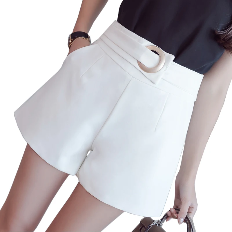 low cost 2019 Summer Wide Leg Shorts Women Fashion Casual Short Pants Women Sexy High Waist Shorts Solid Ele