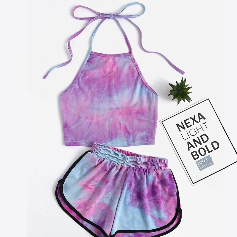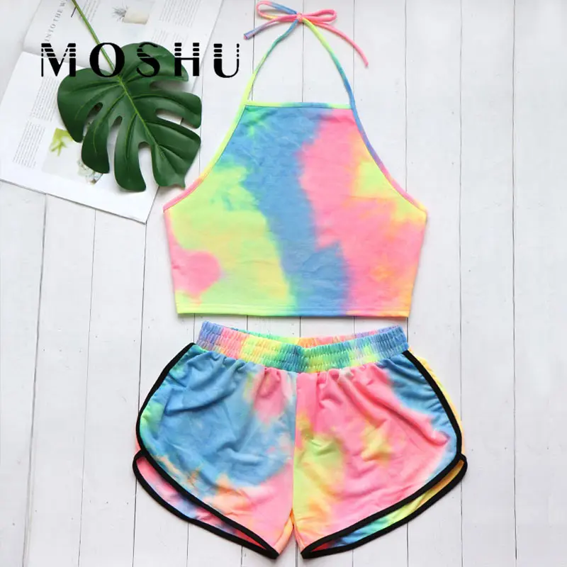 Ideal Summer Two Piece Women's Sets shorts Halter Short Pantsshein Backless Crop Top Sexy Hot Pants Sweat