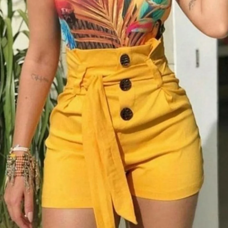 incredible Women Solid Shorts with Belt High Waist Button Slim Fit Short Pants for Summer QL Sale