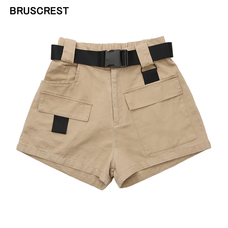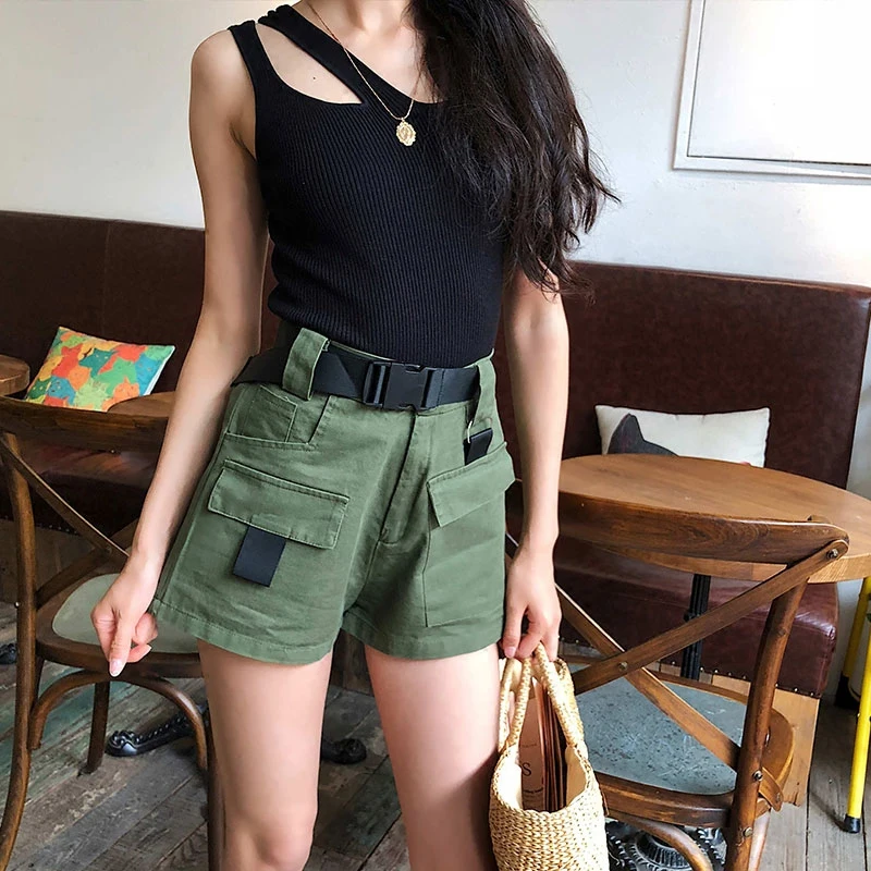 Most effective 2019 Elastic high waist shorts for women black summer belt shorts vintage sexy cotton biker pocket