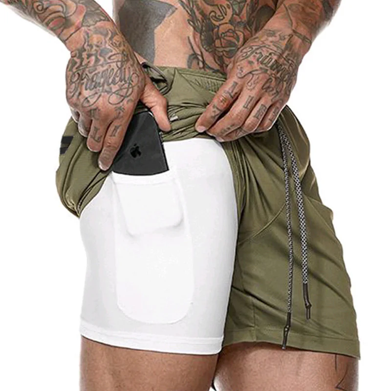 remarkable 2019 Running Shorts Men Sport Shorts Double-Deck Gym Finess Shorts Quick Dry Training Exercise Jogg