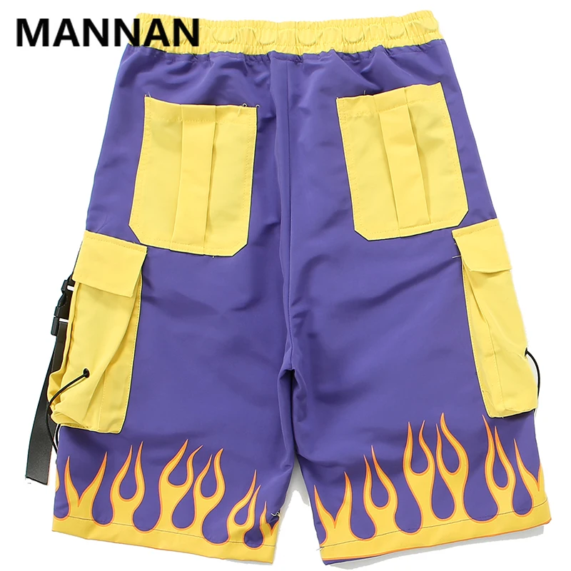 remarkable MANNAN Short Pants Men Casual Hip Hop Pocket Fire Streetwear Print Loose Cargo Shorts Men Summer Fa